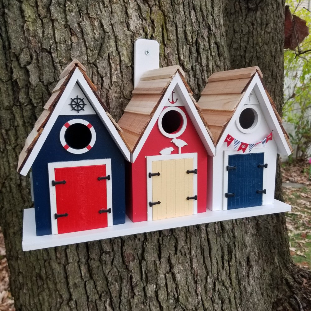 Dockside Trio Birdhouse - Blue, Red & White