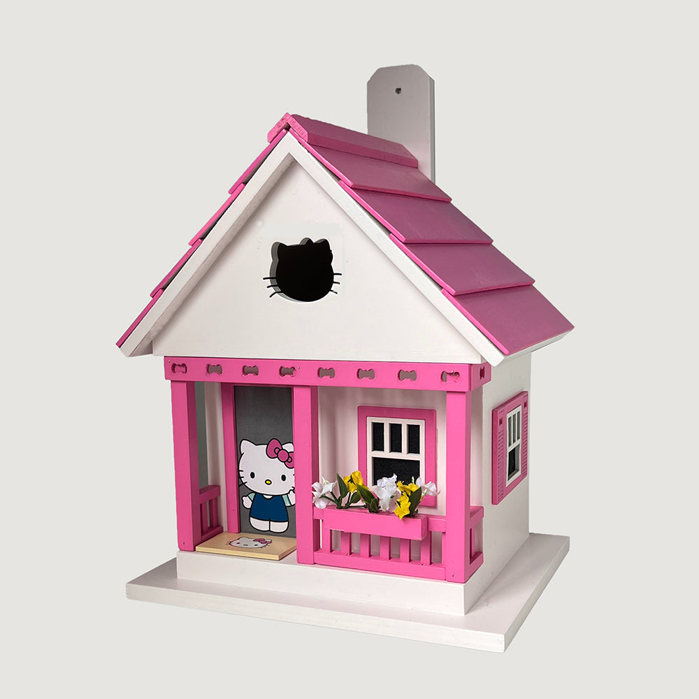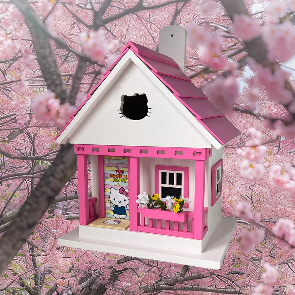 - The You Make Me Happy Birdhouse is a tribute to the beloved character Hello Kitty, whose real name is Kitty White.