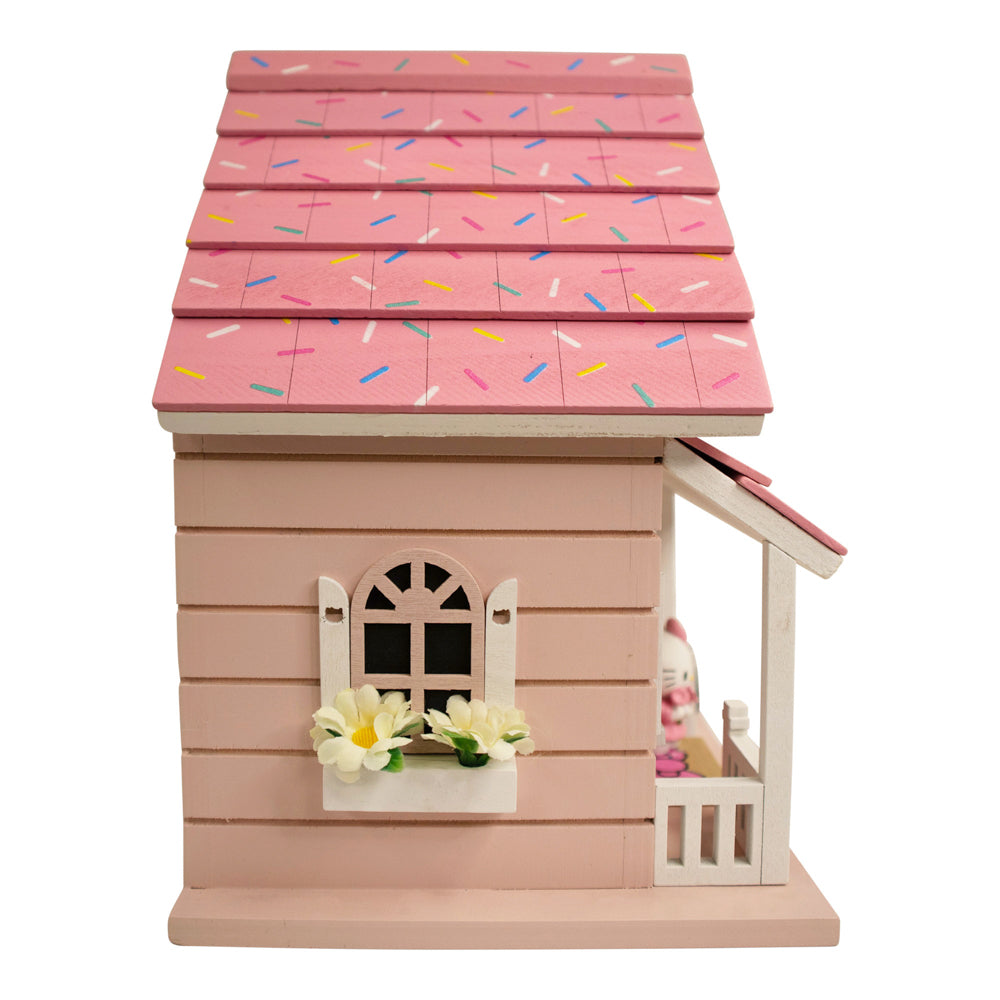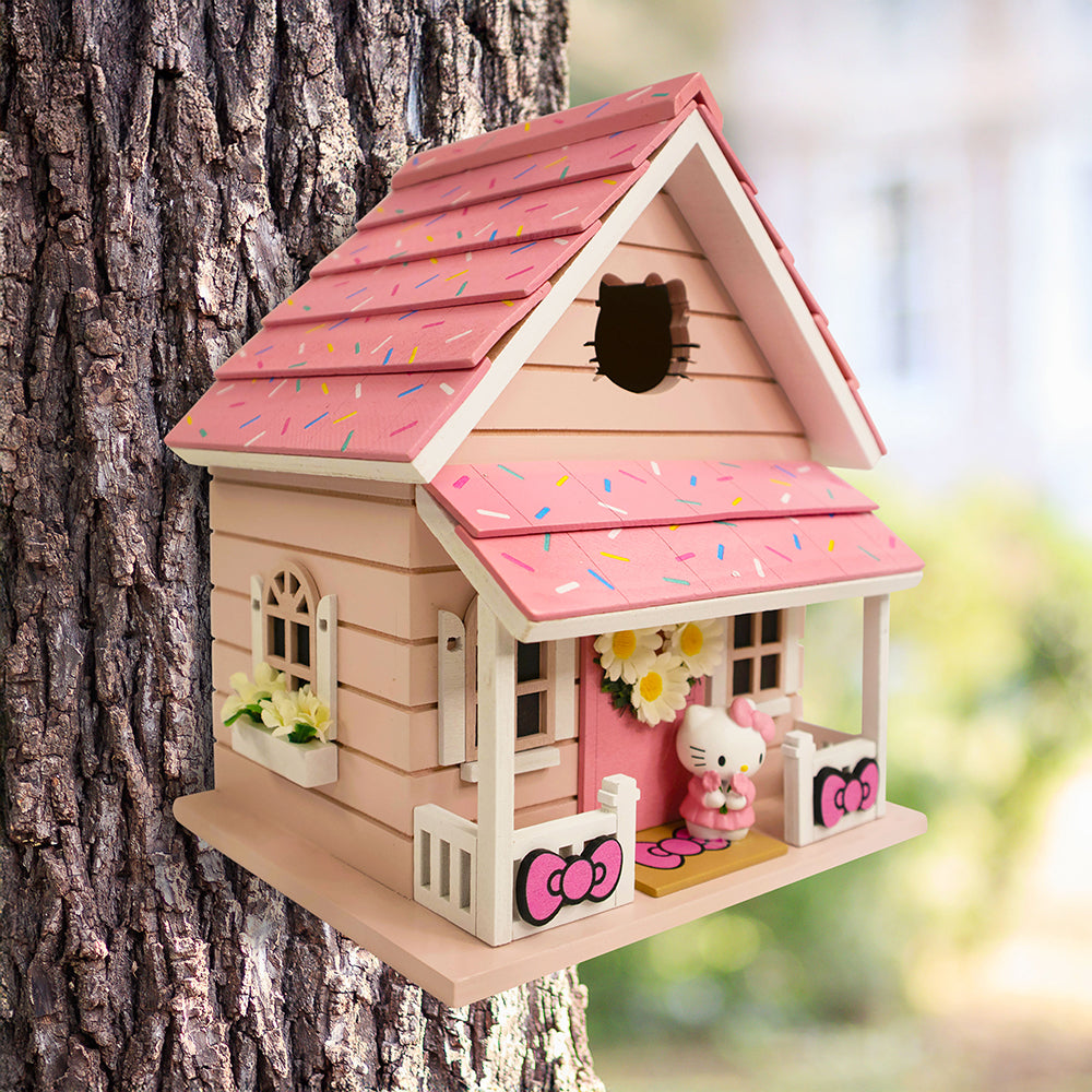 - This birdhouse comes with a three-dimensional figure of the classic Hello Kitty character.