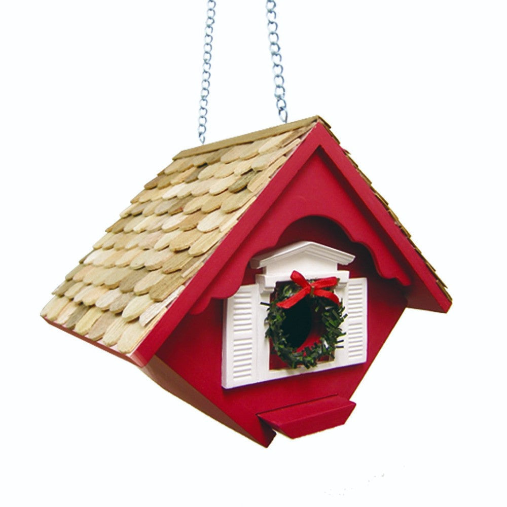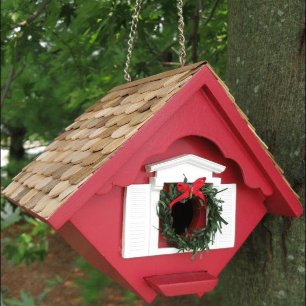- The holiday edition of the Little Wren House is red with a removable wreath.