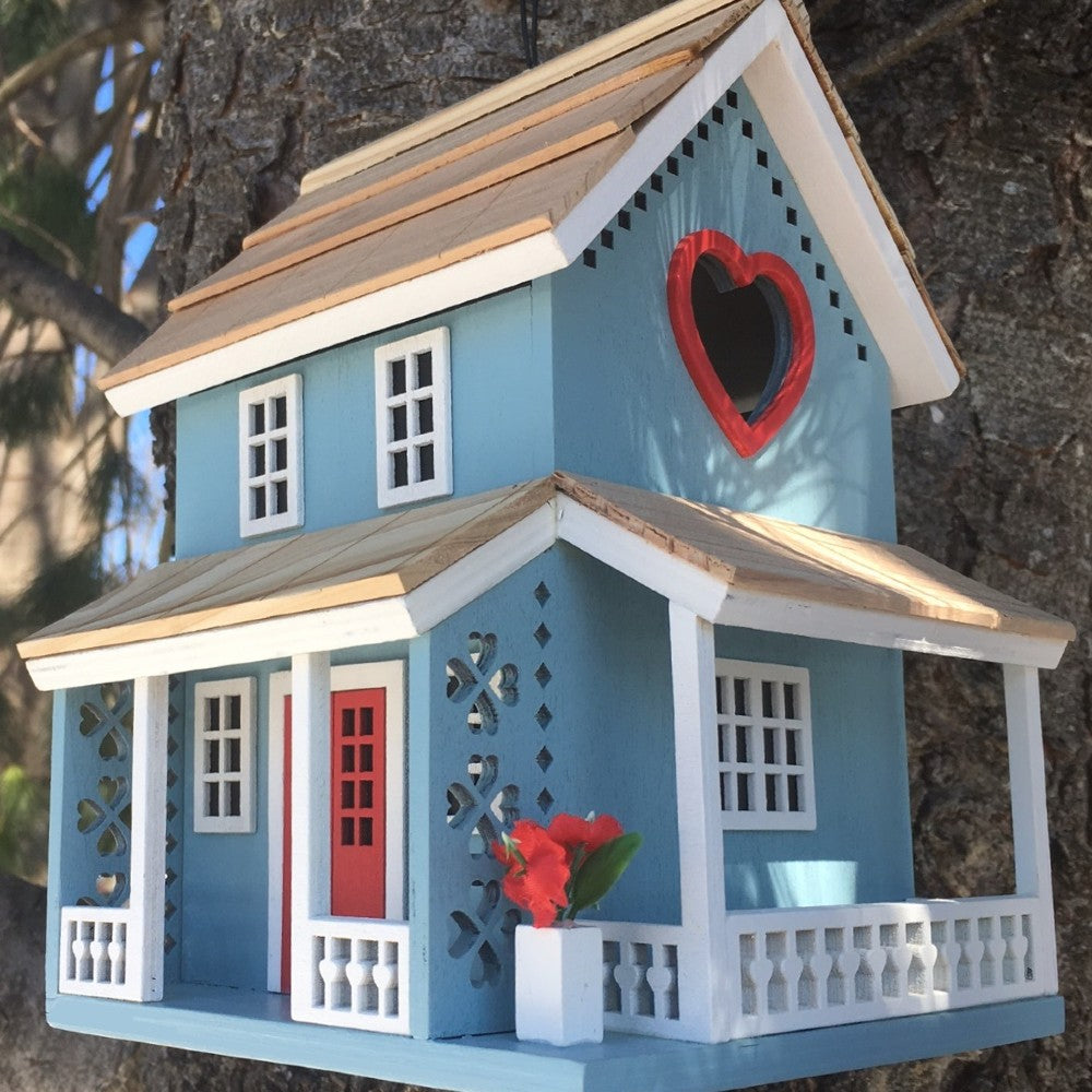 - The Lovers Lane Cottage is a lovely refuge for your feathered friends, adorned with cut-out details on the rails and the house. Sprinkled with flower baskets, this birdhouse has lots of charm.